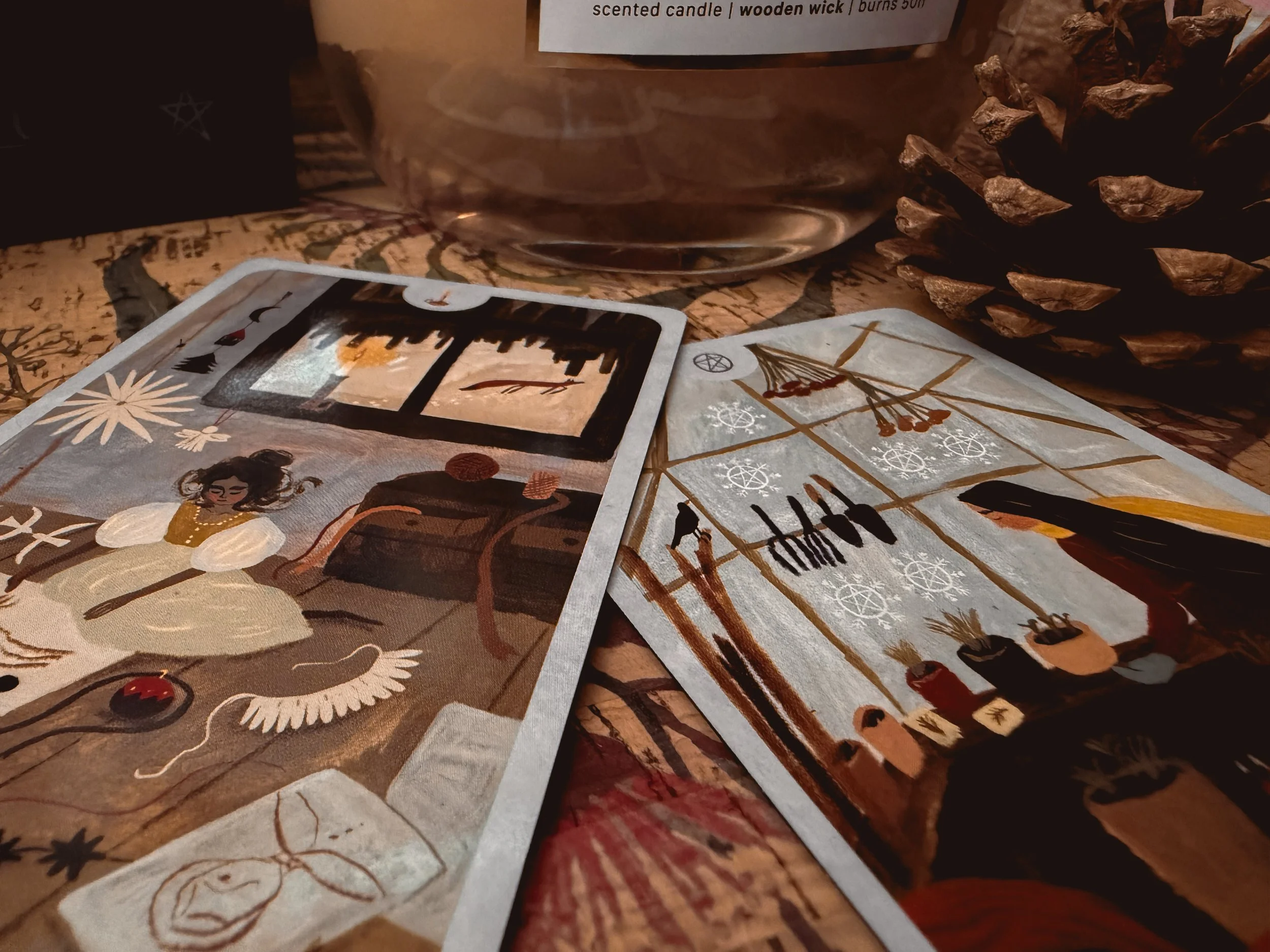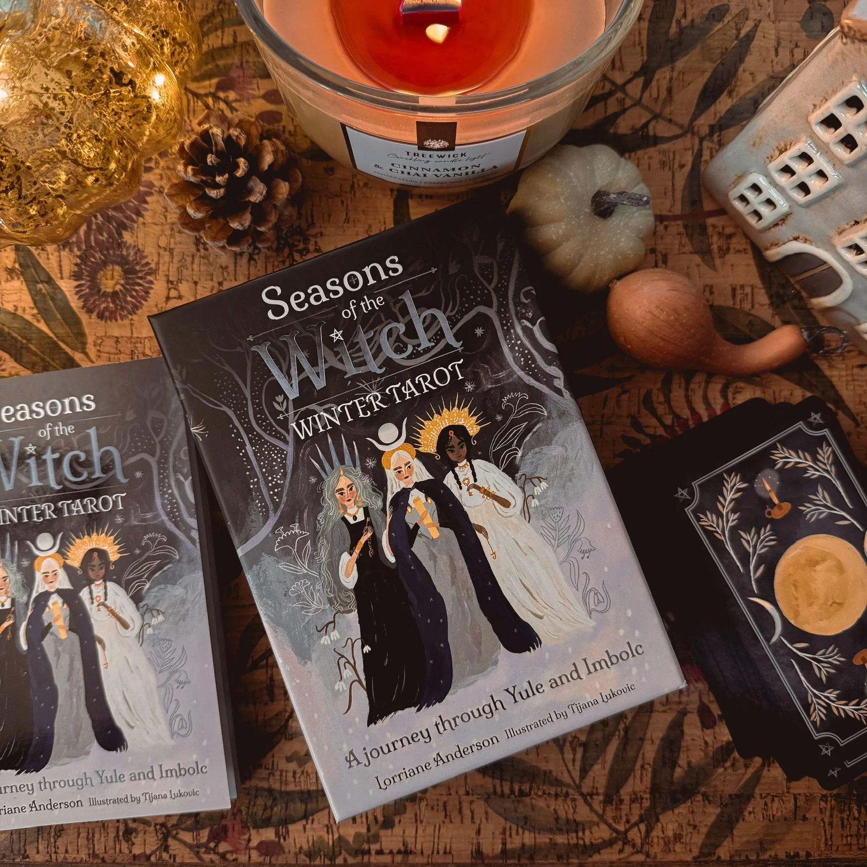 The moment I held the Seasons of the Witch: Winter Tarot in my hands, it felt like opening a door to a quiet cottage in the woods — candlelight flickering, frost tracing the windows, the scent of cinnamon and pine in the air.